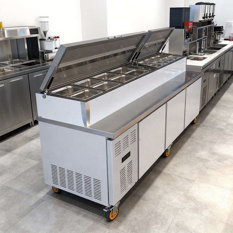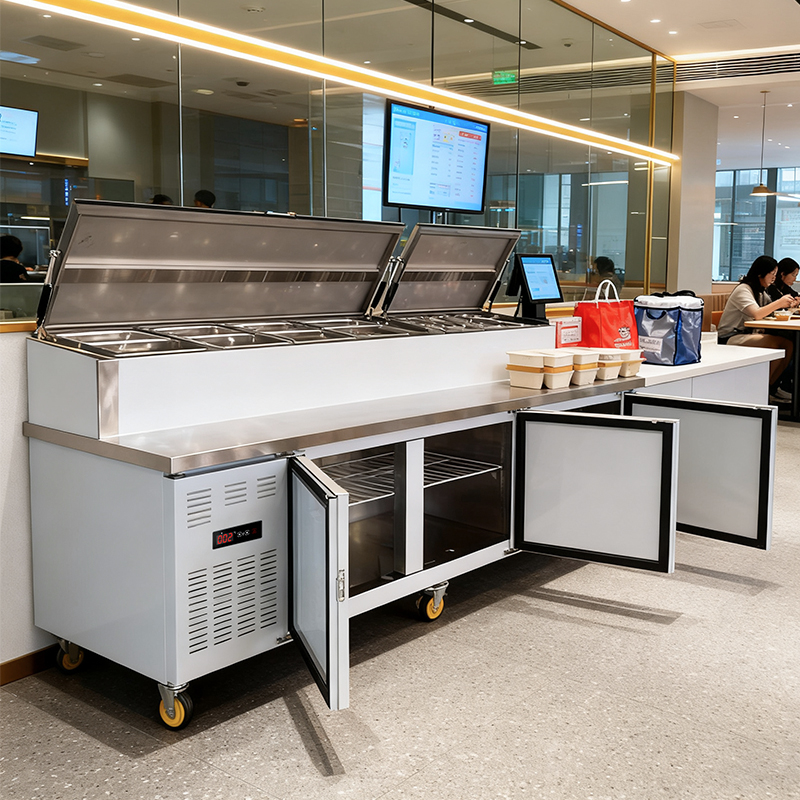 Stainless steel double-opening lid integrated refrigeration operation cabinet